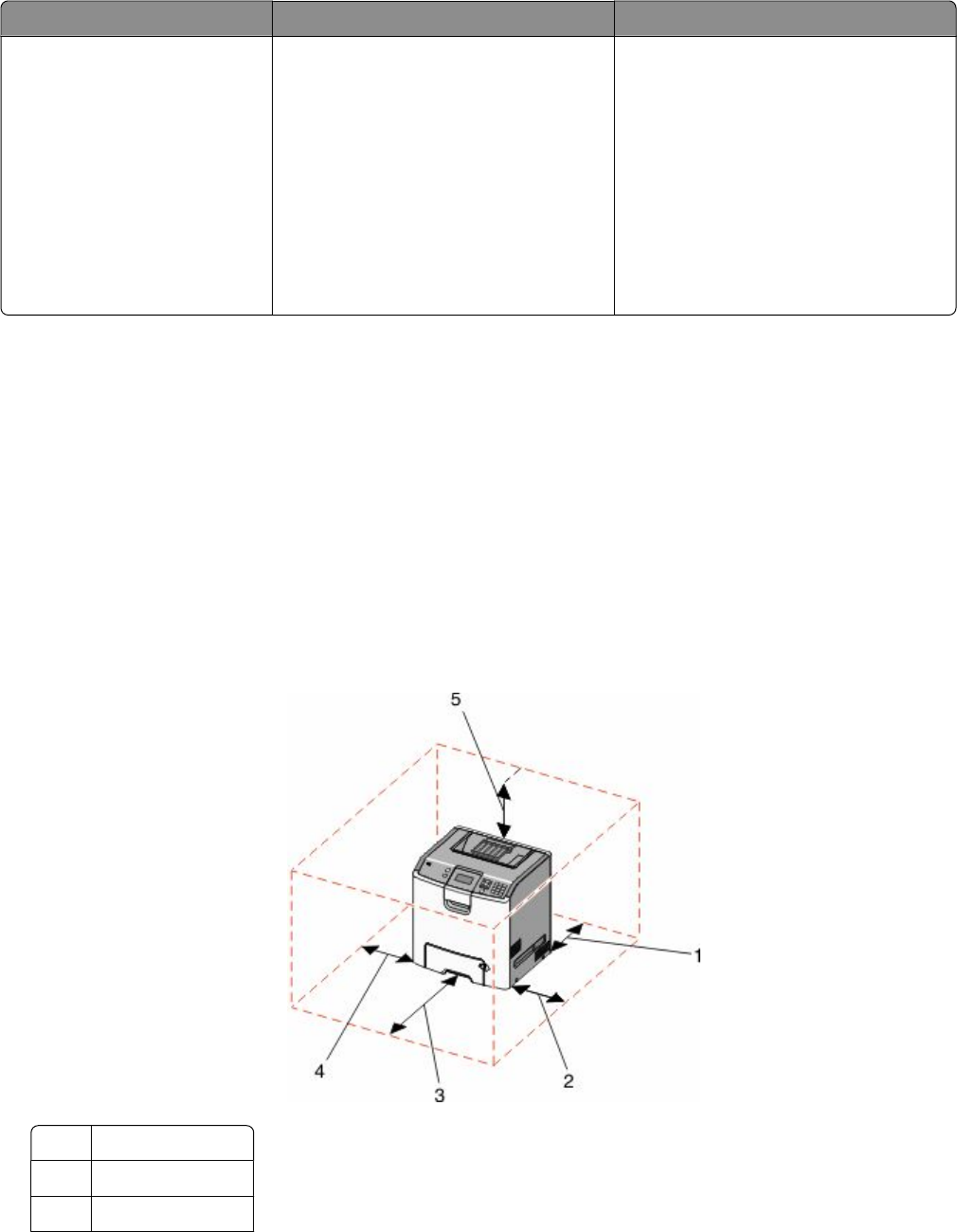• Allow the following recommended amount of space around the printer for proper ventilation:
